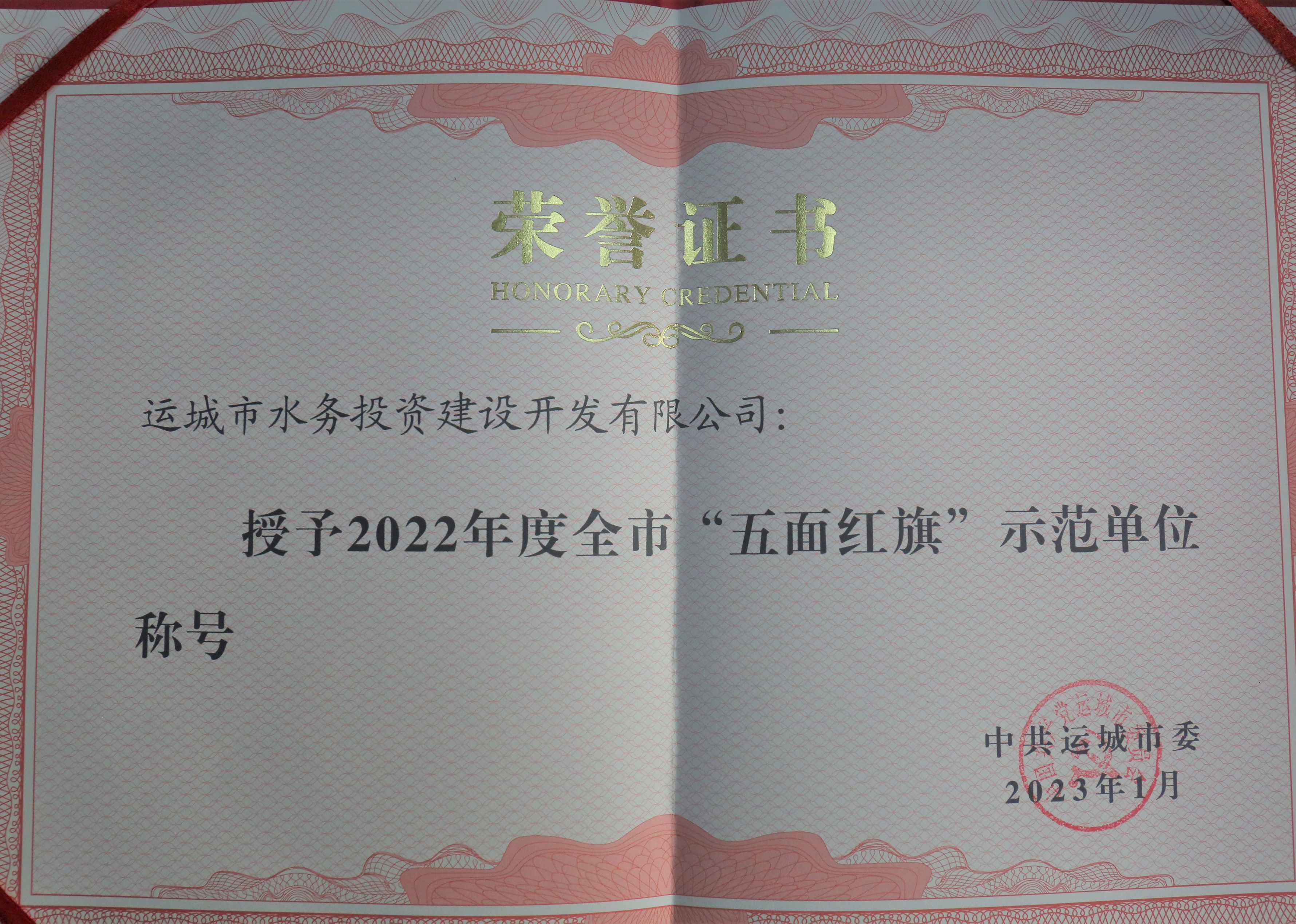 近日,運(yùn)城市水投公司被中共運(yùn)城市委授予了2022年全市“五面紅旗”示范單位榮譽(yù)稱號(hào)。