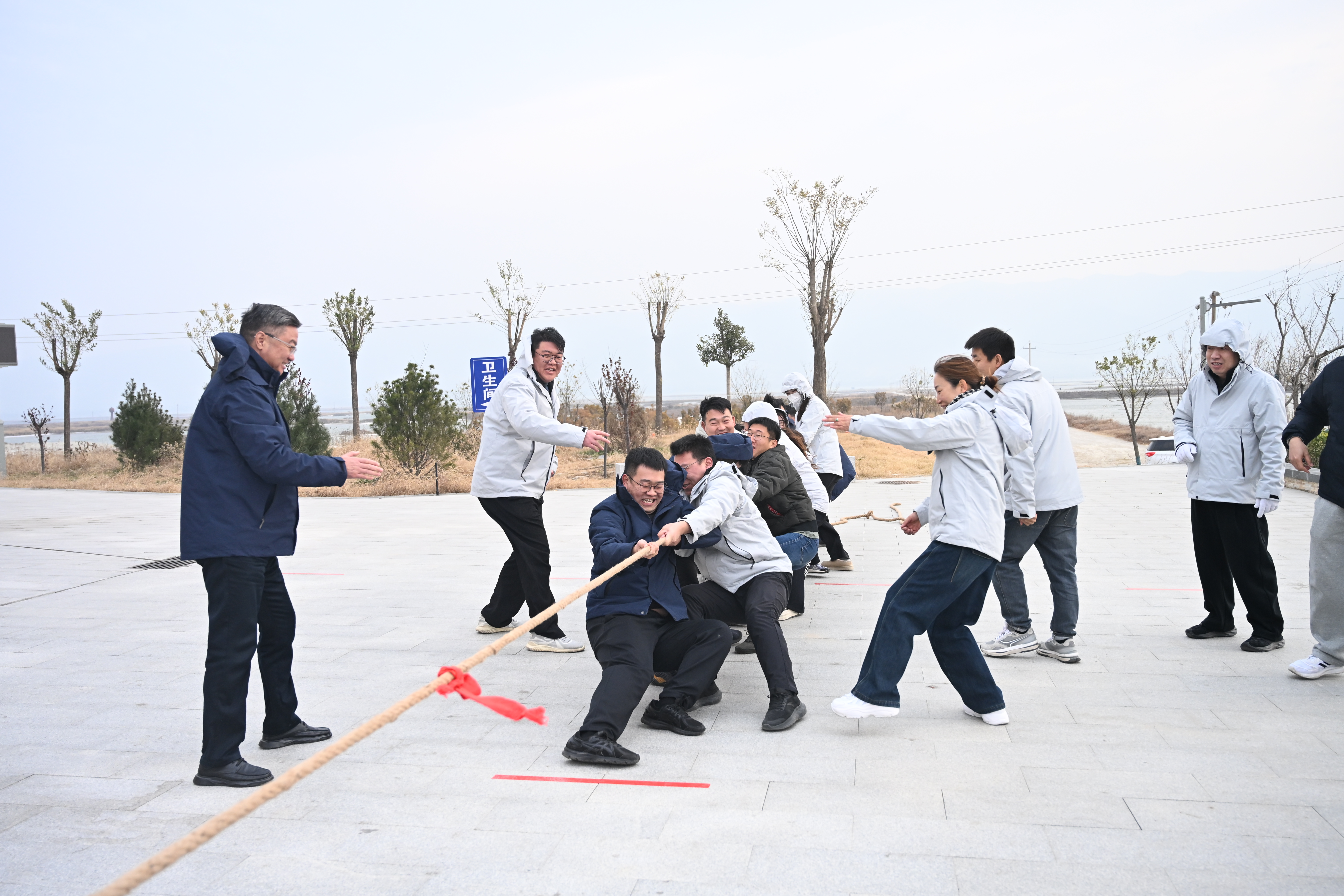 本次運動會設(shè)有“氣球轉(zhuǎn)運”“團(tuán)隊拔河”“小火車觀光”三個特色項目,全體干部員工分為四個小隊展開角逐。盡管寒風(fēng)凜冽,但活動現(xiàn)場始終暖意融融、氣氛熱烈。“氣球轉(zhuǎn)運”環(huán)節(jié),各組隊員背靠背、肩并肩,默契配合傳遞氣球,歡聲笑語間盡顯協(xié)作智慧;拔河賽場上,各組選手緊握長繩、穩(wěn)扎腳步,“一二、加油!”的吶喊聲震徹全場,一股繩、一條心,生動詮釋了團(tuán)結(jié)拼搏的強(qiáng)大力量;“小火車觀光”環(huán)節(jié)別具一格,職工們沿途欣賞冬日鹽湖靜謐美景,投喂天鵝、漫步棧道,在輕松愜意的氛圍中交流工作、暢談生活,進(jìn)一步增進(jìn)了同事情誼,讓休閑時光充滿溫度與意義。