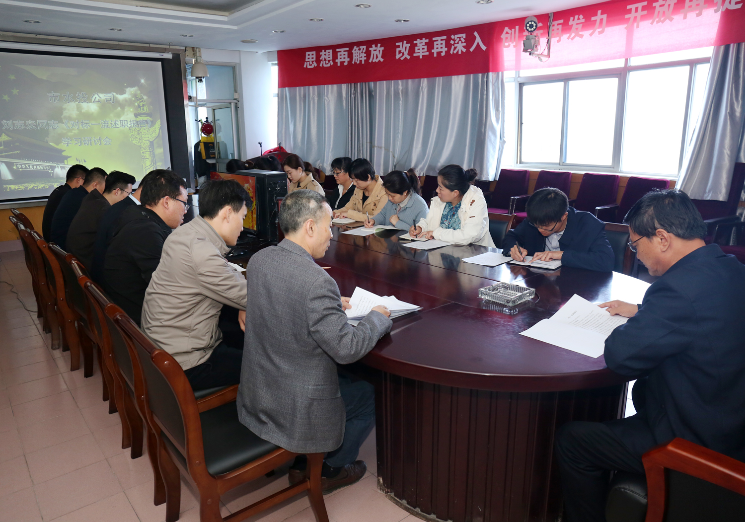 4月8日上午,根據(jù)市委大討論領(lǐng)導(dǎo)組安排部署,我公司召開市委書記劉志宏同志《對標(biāo)一流述職報告》學(xué)習(xí)研討會,公司班子成員及全體員工參加會議。